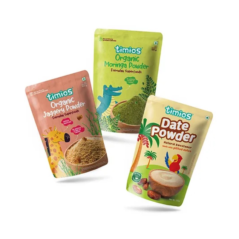 timios Jaggery Powder Moringa Powder & Date Powder Combo Pack of 3 – 100 g Each