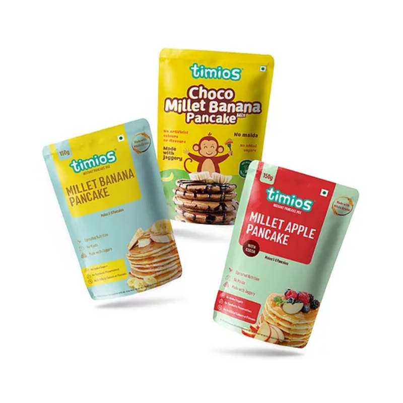 timios Multigrain No-Maida Millet Apple, Banana & Choco Millet Banana Pancake Pack of 3 – 150 g Each