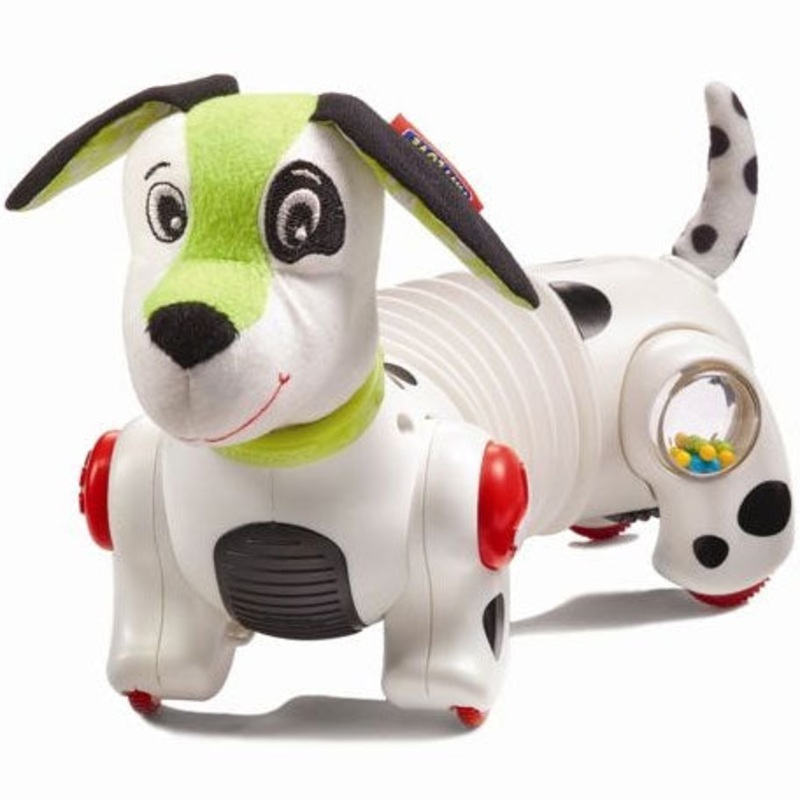 Appropriate from 6 - 24 Months. Encourage your baby to crawl with the Follow Me Domino toy dog that barks and plays musical tunes when moving. The toy is a motorized, self-rolling puppy that engages baby and stimulates physical movement and interaction. Fo