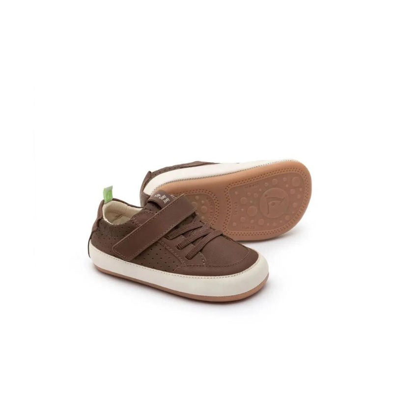 The Urbany sneakers in dark brown have elastic laces that don't come untied, Velcro for a better fit and perforated leather to keep your feet cool and comfortable during those first few steps. The numbering of other brands does not serve as a parameter to