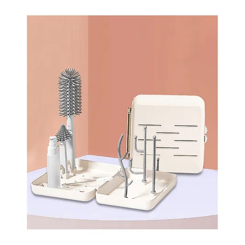 6-in-1 Cleaning Set Includes bottle brush, nipple brush, and straw cleaner for complete, efficient cleaning.Compact & Travel-Friendly Lightweight design with a built-in storage box, perfect for on-the-go use.Sturdy Silicone Bristles Tear-proof, sterilizabl