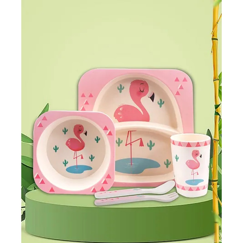 Tony Stark Bamboo Baby Feeding Set – 5-Piece Tableware for Toddlers, Kids & Babies Includes Plate, Bowl, Cup, Spoon, Fork – BPA-Free, Eco-Friendly |Organic & Natural (Flamingo)