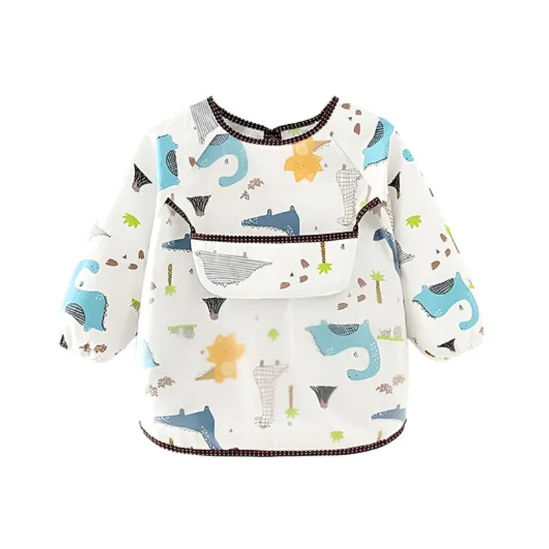 Tony Stark Sleeved Waterproof Baby Bib with Pocket | Lightweight EVA Toddler Bib for 6 to 24 Months (Jurassic Joy)