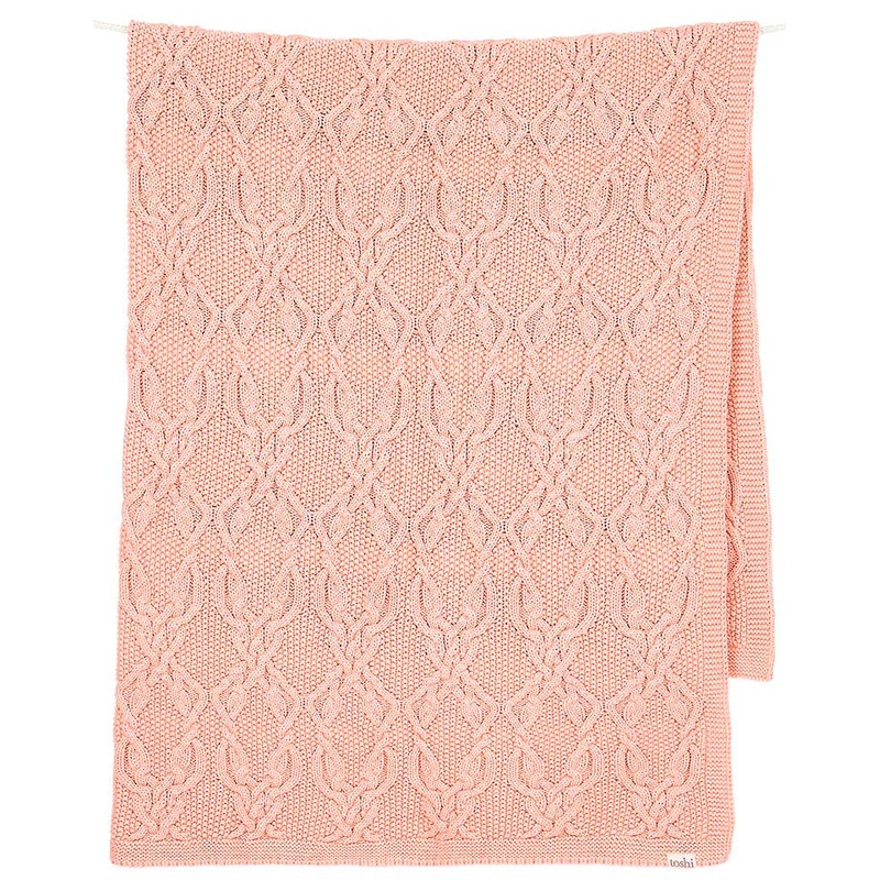 The sumptuously soft Toshi Organic Baby Blanket Bowie has a hand crafted feel and features a beautifully textured cable knit design. The finest quality certified 100% organic cotton yarn is as gentle on your baby’s delicate skin as it is on our precious environment. Melange yarn offers a level of refinement to this sophisticated Toshi baby accessory. The colour of this blanket is Blossom, a delightfully pretty pink hue. The Toshi baby blanket measures 90 x 110cm.