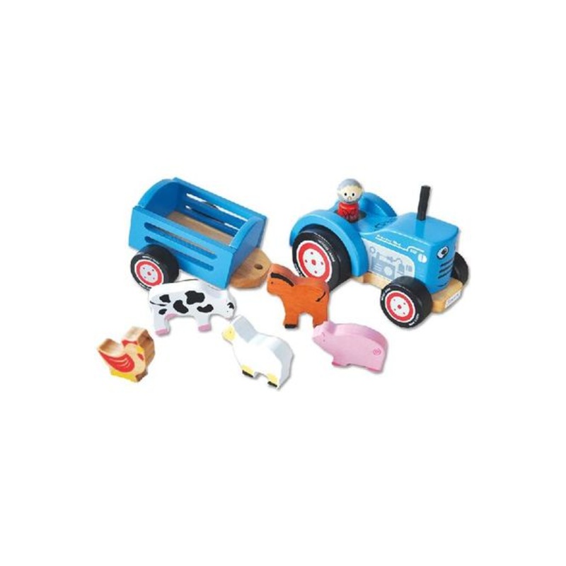 Tractor Tim is a classic blue farm tractor and detachable trailer with 5 wooden farm animals. The peg person, Farmer Tim, is removable and the animals can all ride in his trailer, giving your child plenty of fun and imaginative play. This toy is a great wa