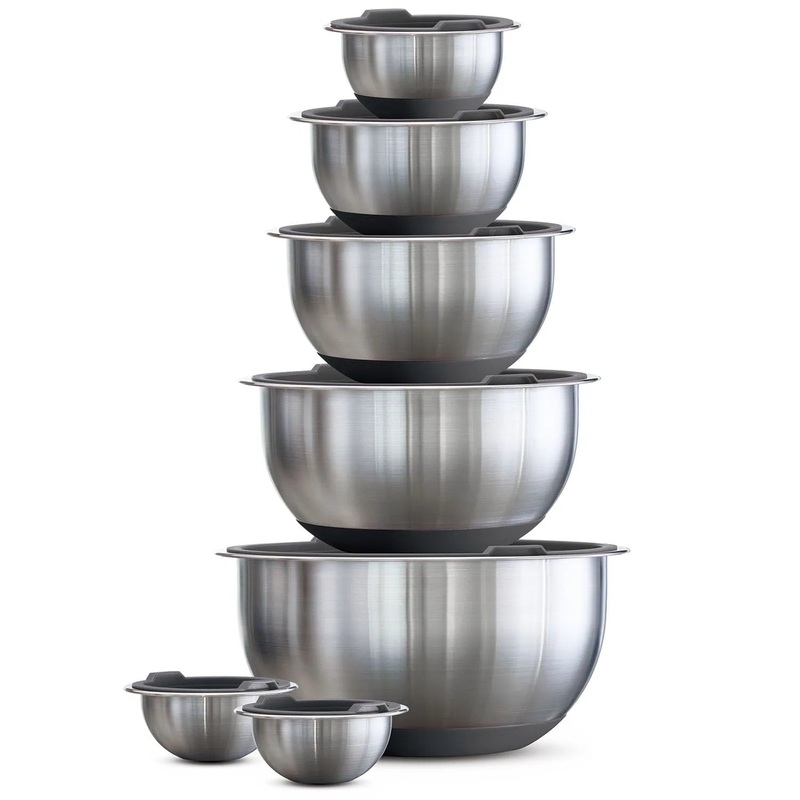 Tramontina 14-Piece Covered Stainless-Steel Mixing Bowl Set – Gray