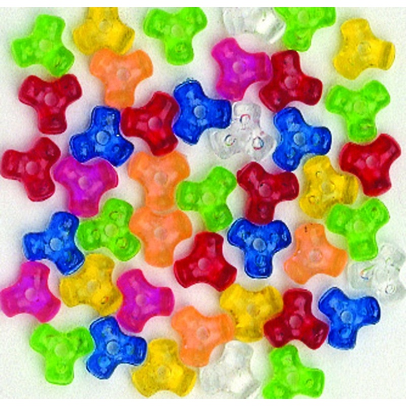 Multi-color, translucent tri-beads are 11 mm, and come in a 1,000 piece assortment. Great for large groups.SMALL PARTS. Not for Children under 3 years.