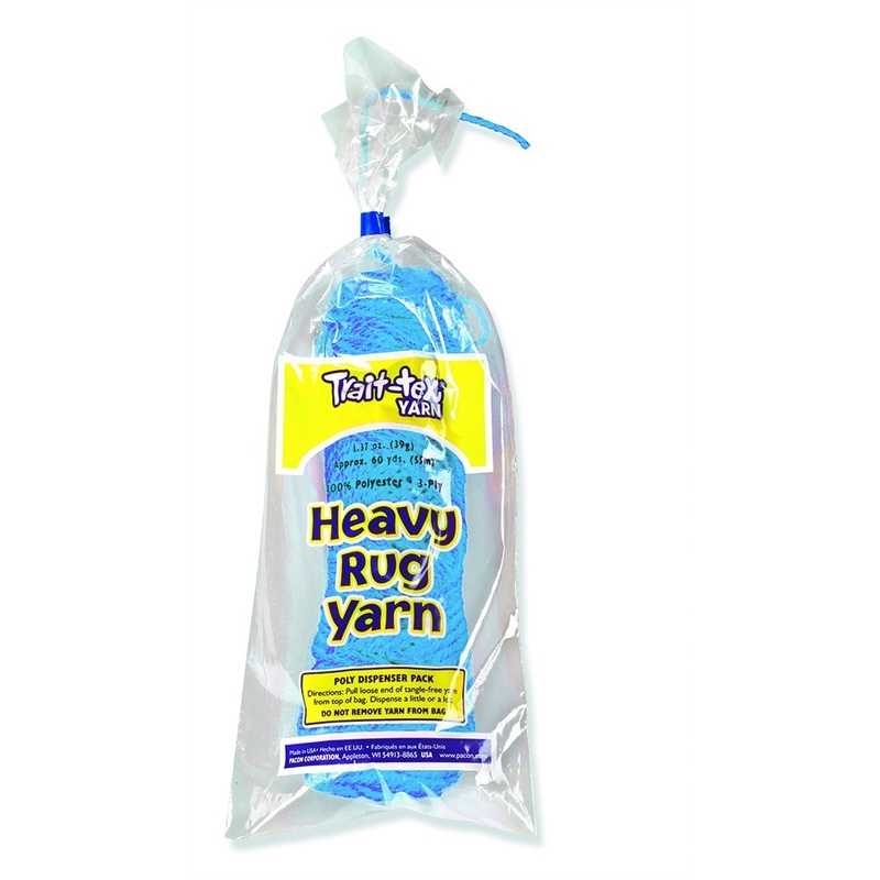 3-ply, 100% polyester rug yarn is non-allergenic and wound into 1.37oz. (60 yards) pull skeins and packed into easy to use poly bags.