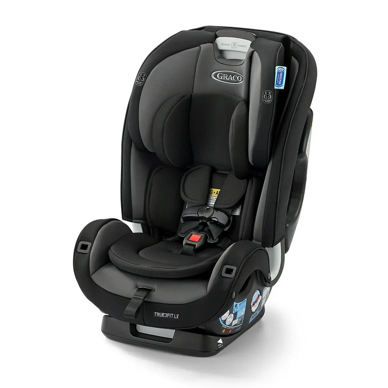 The Graco True3Fit LX 3-in-1 Car Seat ft. Anti-Rebound Bar is our slimmest design that fits 3 car seats across, saving space in your back seat without compromising on the safety you trust and the features you need. This all-in-one car seat grows with your child from rear-facing harness (5-40 lb) to forward-facing harness (26.5-65 lb) to highback booster (40-100 lb).
