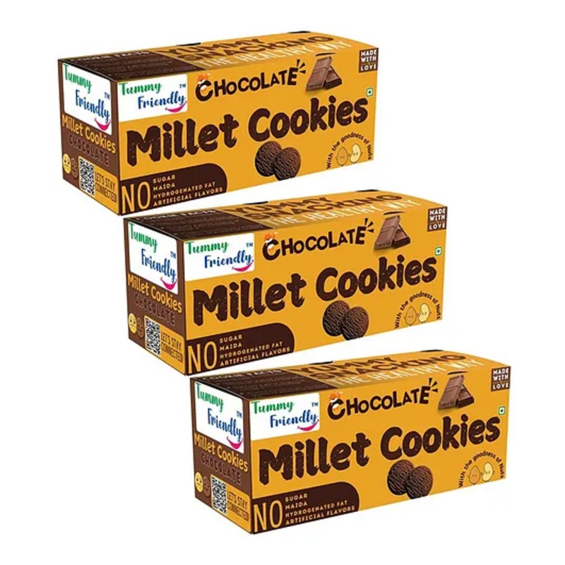 Tummy Friendly Foods Millet Cookies – Chocolate – Pack of 3 – 75g each. Healthy Ragi Biscuits, snacks for Baby, Kids & Adults