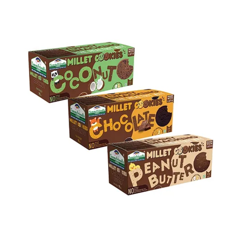 Tummy Friendly Foods Millet Cookies – Peanut Butter, Chocolate & Coconut – Pack of 3. – 75g each. Healthy Ragi Biscuits, snacks for Baby, Kids & Adults