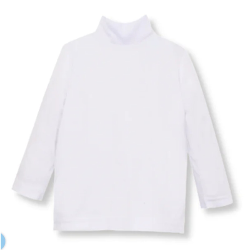 A perfect Lullaby Set basic for cooler days! A long sleeve white knit turtleneck with a snap closure at the back neck for easy wear!