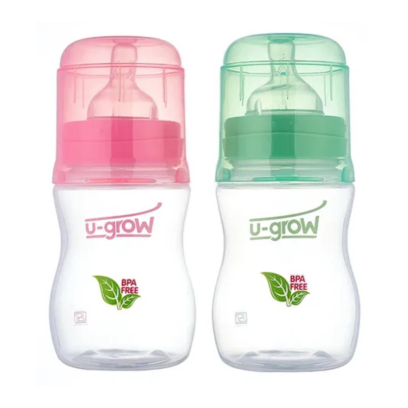 Nipple size - mediumSuitable for feeding milk & juiceMade of food-grade, non-toxic polypropyleneSmooth and easy to clean inner walls, heat resistant 120 CWide neck openingSelfsterilisationbottle, just pop it in the microwaveSpecificationsBrand -U-growType