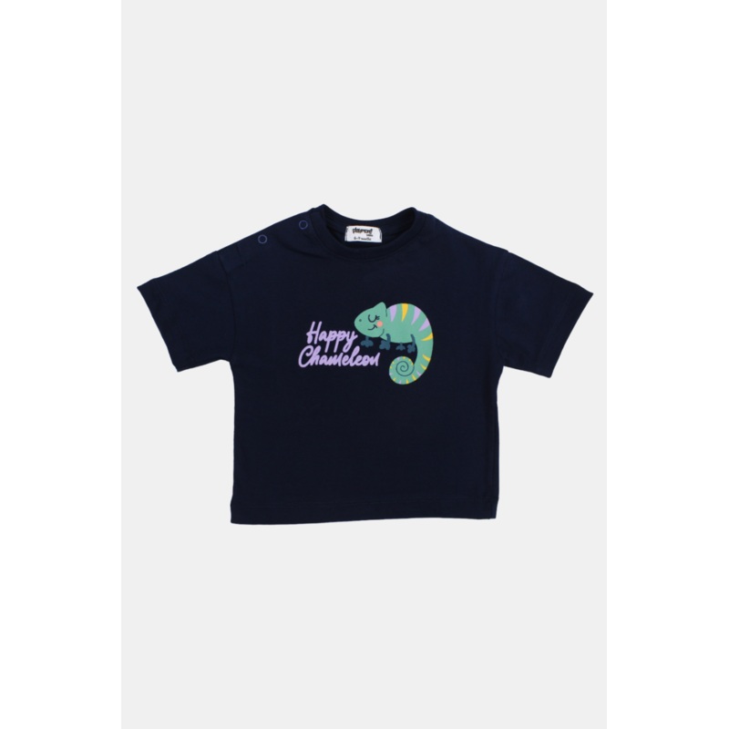 Simple, cheerful, and made for tiny adventures this Happy Chameleon short-sleeved T-shirt in navy is perfect for adding playful charm to your babys wardrobe. Made from soft, breathable cotton, it keeps your little one comfy and cool all day long.Key Featur
