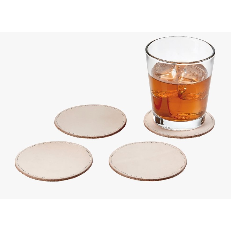 Vachetta Handcrafted Leather Round Coasters – Set of 4