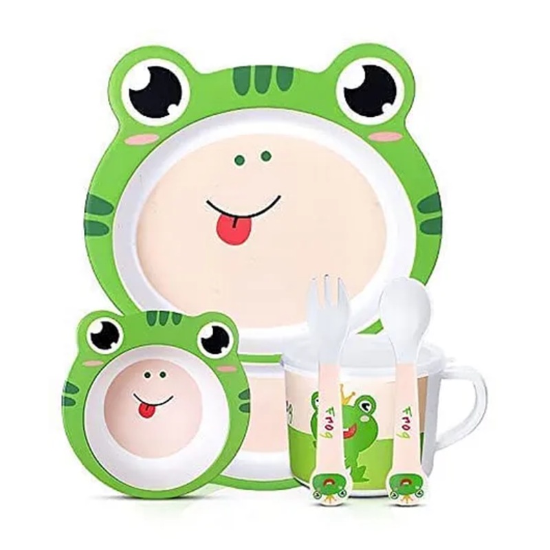 SpecificationBrand VelliqueType Dinnerware Age 3 to 8 Years Package Dimension L 28.6 x B 18.2 x 8.1 cm Product DescriptionVELLIQUE cute dinnerware set is made of naturalbamboo fiber with environmental-friendly materials printing, which thecompostable material more durable than porcelain or ceramic. Made from naturalbamboo fiber, non toxic, eco friendly. Much safer than plastic and otherharmful materials. Animal shaped dinnerware set for kids creates an excitementthat keeps children at the dinner table longer and makes eating a meal morefun. Lighter than ceramic, is best for you and your toddler to carry themeasier. And the texture of the bamboo makes it comfortably for kids to hold.Great for home, picnic, party, travel, restaurant, outdoor and more. BrightOrange and Green colourful prints by vegetable oil, safety andhealth. Items included in the package