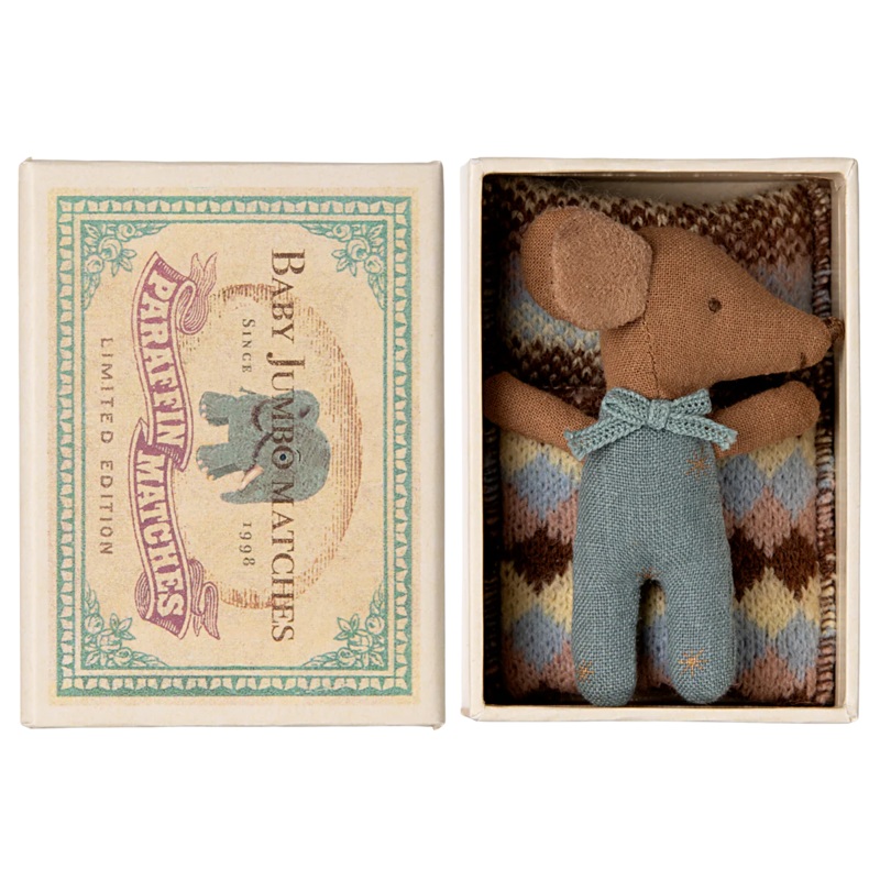 A classic Maileg item. This mouse is ready for hours of play and sleeps tight in the little matchbox. The clothes and bedlinen are made of soft fabrics with unique prints and beautiful colors.NEED TO KNOWHeight: 3.1in, Net weight: 0.1lbRECOMMENDED AGE+3 YE