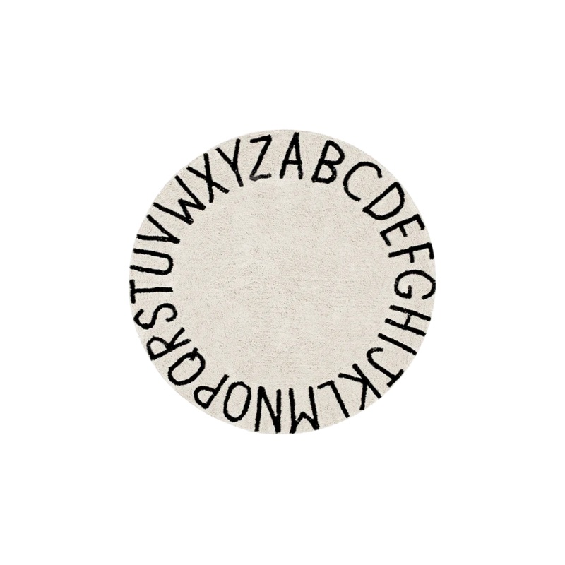 A rug for kids to play and explore the world of letters! This timeless design is perfect for little ones to practice their ABCs. They can run their fingers along the letters, learning as they play. With its versatile round shape and neutral color palette,