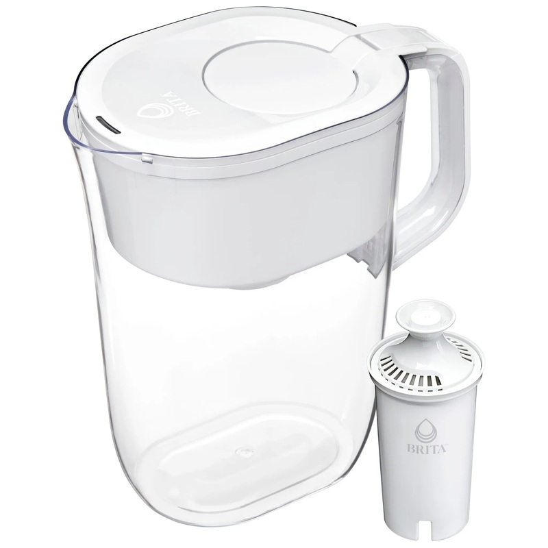 Drink healthier, great-tasting tap water with the BPA-free, large 10-cup Brita Tahoe Water Filter Pitcher. This filter cuts the taste and odor of chlorine, as well as reduces mercury, copper and other impurities, to deliver great-tasting drinking water. By switching to this Brita water purifier pitcher, you can replace 1,800 single-use plastic water bottles a year to stay hydrated, save money and reduce plastic waste. This filter water pitcher has a flip-top lid that makes refilling a breeze, while the convenient handle makes the water filtration pitcher easy to carry and pour. A SmartLight filter indicatorBrita’s most accurate and precise pitcher filter life indicatorlets you know when it is time to change the filter. Get great taste, less waste and more savings from Brita.