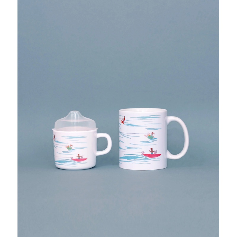 Mama (or Dada!) + Me sets are the best. Easy and fun to give and receive, give a summer-loving mama, dad, or even grandpa a sweet gift to share with their little.Watercolor texture can be seen in the waves and boaters on this gender neutral sippy cup and c