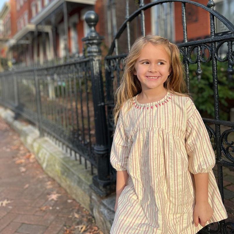 Be the first to review “Waterfall Waistline Dress – Cream, Red & Gold Stripe” Cancel reply