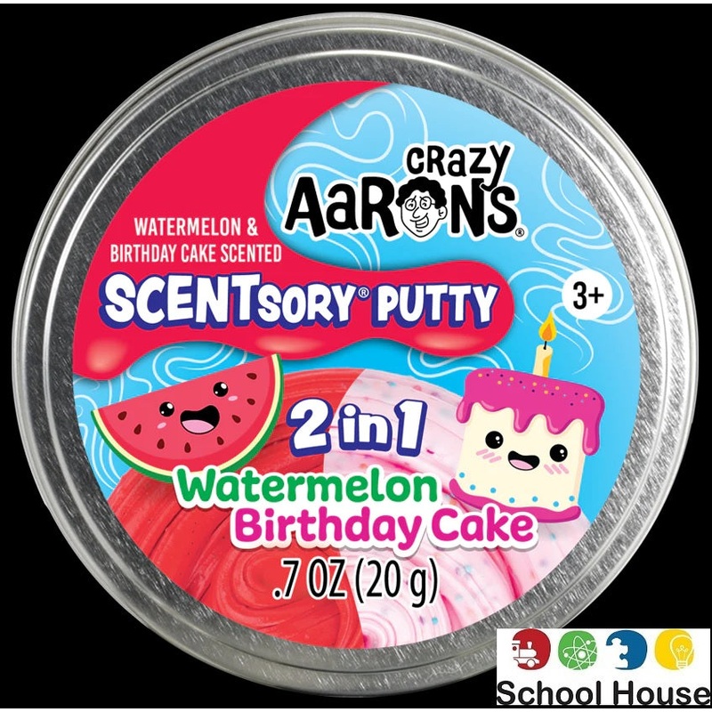 A fun way to double up your putty game. The red side infused with a watermelon scent and the pink side infused with a birthday cake scent for the ultimate mashup! 2 in 1 Watermelon and Birthday Cake SCENTsory Putty for a fruity and sweet experience.