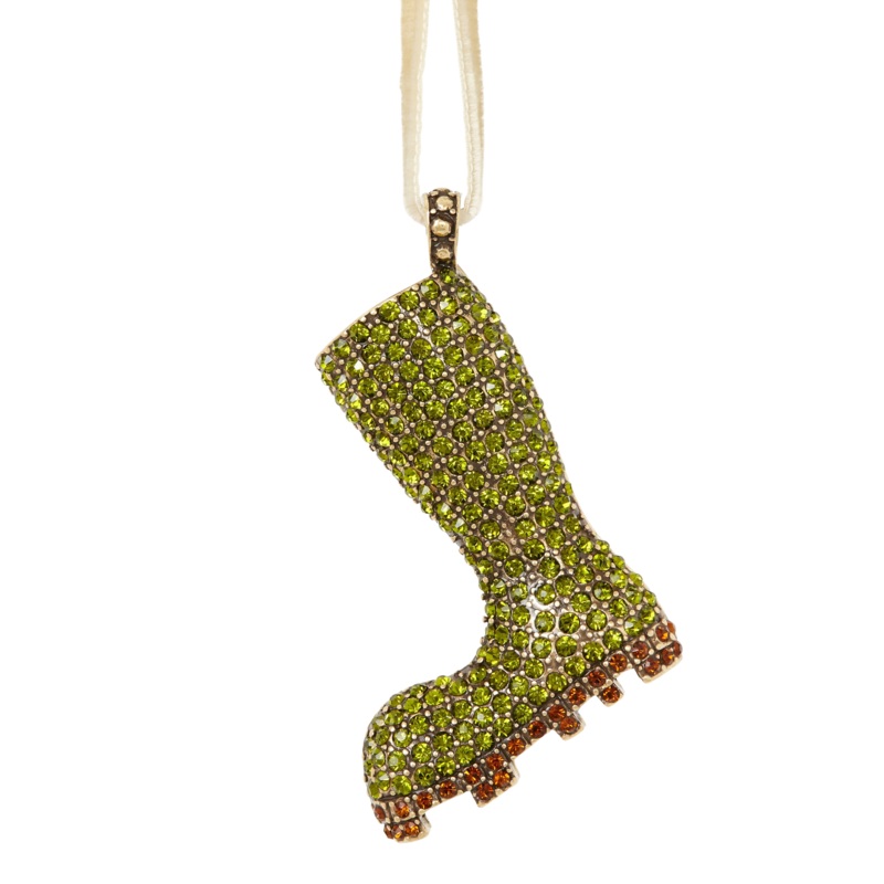 Inspired by her mothers flare for holiday decorating, Joanna Buchanan has turned her love of travel and knowledge gleaned from twenty years in fashion retail into an eclectic line of tabletop, barware, gifts, and decor. Decorous and whimsical,dangling from the tree or the mantle, the Wellington Boot Hanging Ornamentenlivens any home for the holidays with itssportycheer.Packaged in an organza bag, its ideal for gifting, especially to a host witha love forthe outdoors, or a green thumb.