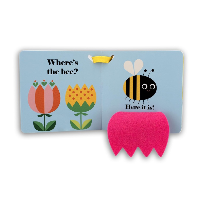 A new stroller edition from this best-selling series, complete with an attachable strap, felt flaps, and a mirror!Five beautifully illustrated spreads show a series of animals, including a caterpillar, a bee, a snail, and a ladybug, hiding beneath bright f