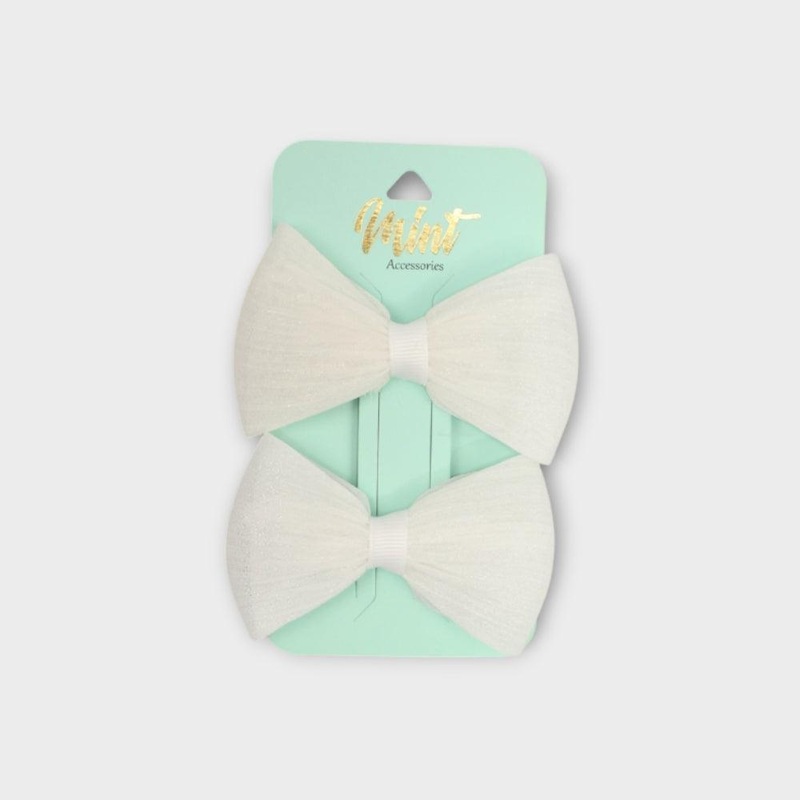 Product: Hair PinColor: WhiteShape: BowCount: 2