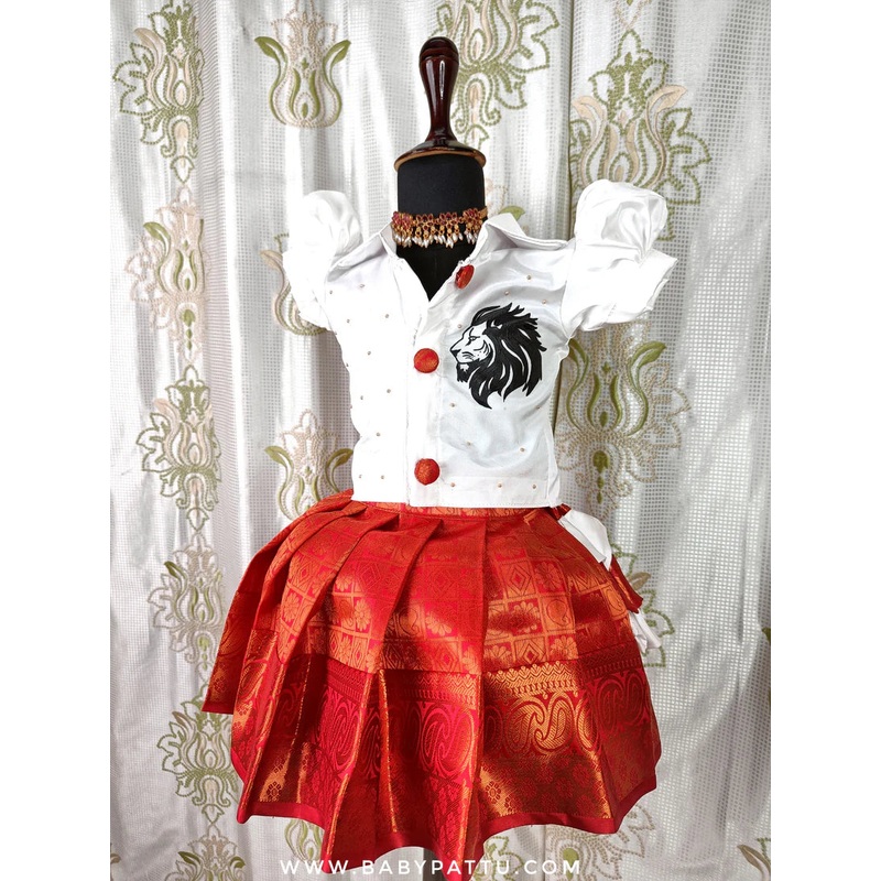 NY76387416WHITE TOP & RED BOTTOM PATTU PAVADA