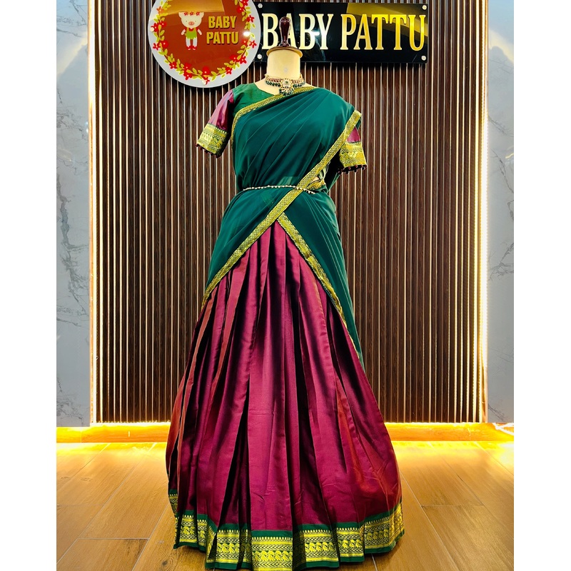 NY76387046Wine And Green Color Soft Silk Half Saree