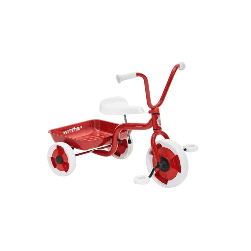 A true Danish design icon that lasts for generations. Thats the red-and-white tricycle by Winther. Over the decades, more than two million of them have been whizzing around with children at the pedals offering freedom, movement and fun for generations of c