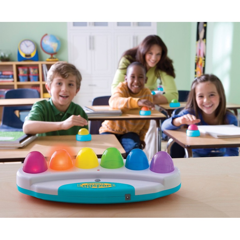 Best-selling Wireless Eggspert is faster than ever before! The flashing, beeping, buzzing, anywhere, anytime game system now features 2.4gHz for the most reliable transmissions.Includes Wireless Eggspert, 6 wireless student buttons, wireless teacher remote