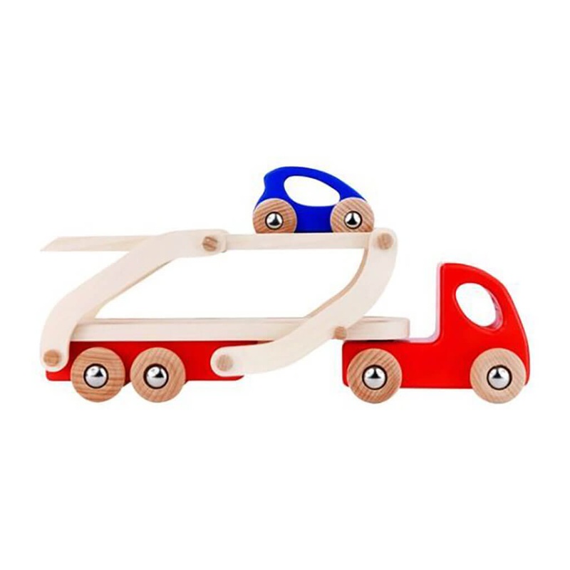 Coming through! This brightly-colored auto transporter is perfectly engineered for little hands and designed with safety and sustainability in mind, this beautiful heirloom-quality wooden toy is recommended for toddlers. It's also a beautiful piece to deco