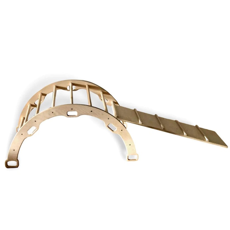 Kindly allow approx 1 week for delivery.This Wooden Arch / Rocker with Ladder Ramp is the perfect addition to any playroom. It features a Climbing Arch/Rocker combination, ideal for developing coordination, balance and motor skills. The included ladder-lik