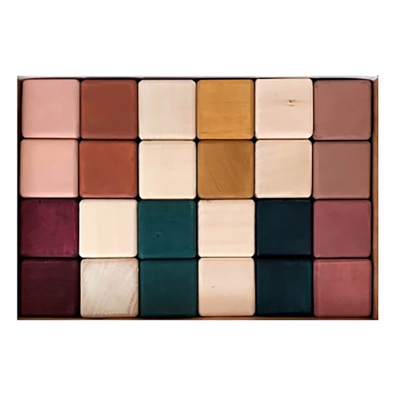 These 24 pieces of wooden cubes set are made out of linden tree covered with water-based paint that you can see the structure of wood through. Together with deep unconventional colors, it makes this cubes set special and allows yourchildrento find multiple