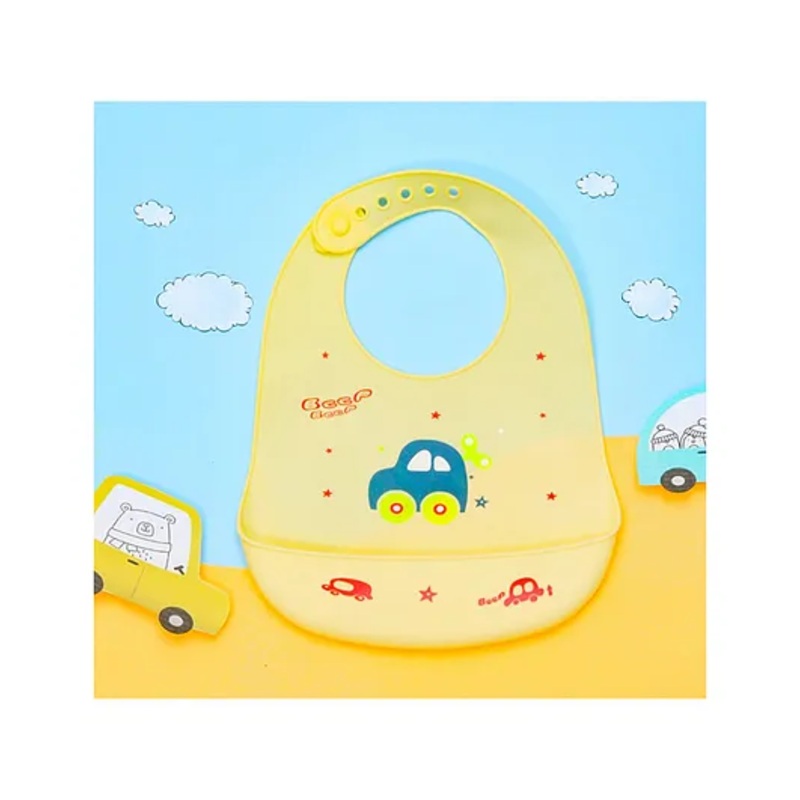Yellow Bee Silicone Car Print Bib with Crumb Catcher and Adjustable Closure for Boys Yellow