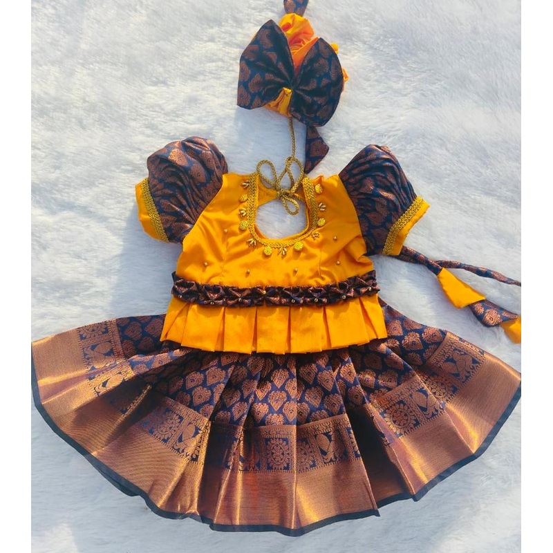 NY76387627Yellow & Blue Pattu Pavada