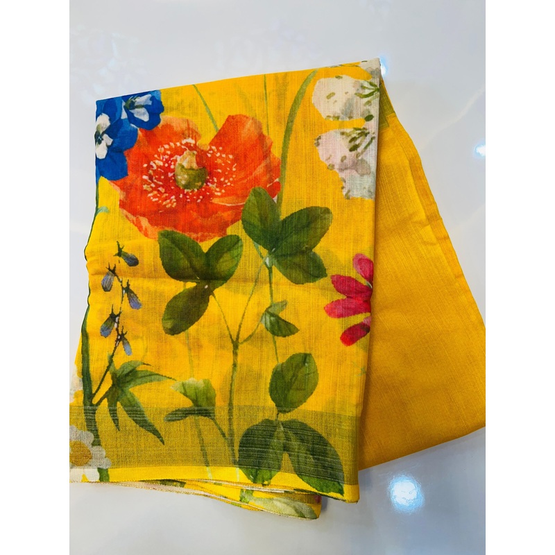 NY76387173Yellow Color Linen Floral Print Saree