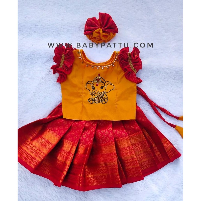 Yellow & Red pattu pavada