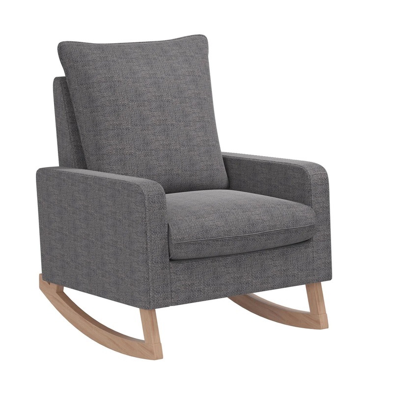 Give your infant a peaceful setting to fall asleep and smile by Introducing a slice of serene Scandinavian style into your new and improved nursery space with the Novogratz Zayne Upholstered Rocker with Wood Base. Its fashionable linen like material feels soft to the touch but also saves you a bunch of time and effort from having to clean up annoying messes and spills. And thats because the fabric has been designed with an anti-stain and water repellant treatment that keeps the upholstery in tiptop shape no matter what your child throws at it. Made with comfort-driven features such as a high cushioned backrest for head support and wide padded armrests, its generous foam and pocketed spring seat is less inclined to sag and is removable to allow for tidying up. Inspired by a classic mid-century modern look, the Zaynes light solid wood legs and base have defined retro curves with built in felt liners that keep hardwood floors protected against scuffing and provide a smooth rocking motion. Bound to be loved by your baby, parents will appreciate how little time it takes to put this furniture piece together only 15 minutes or less!