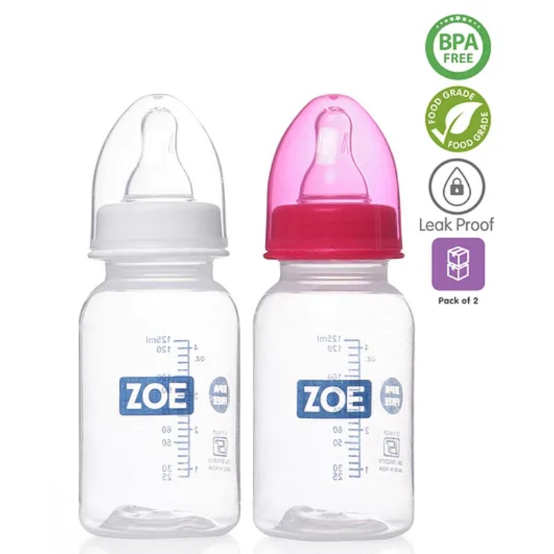 Zoe Feeding Bottle With Nipples Pack Of 2 White And Pink – 125 ml Each